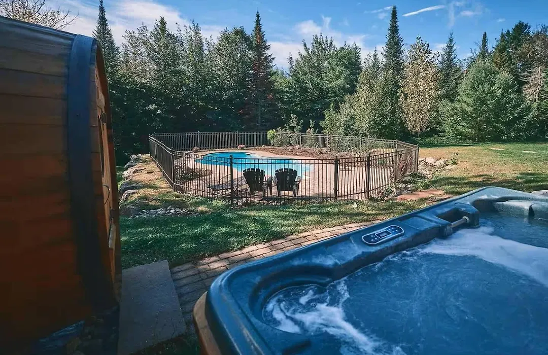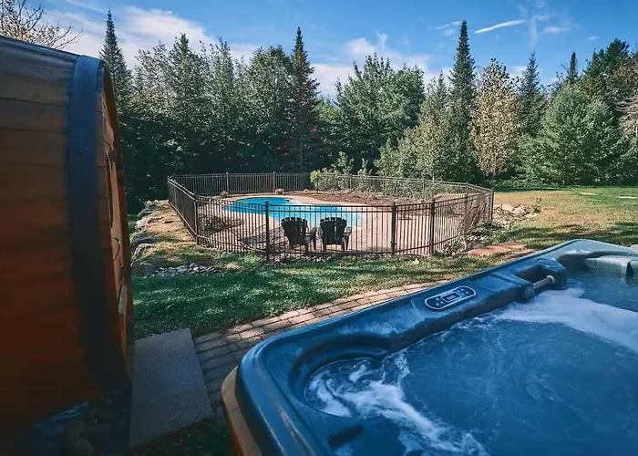 Villan Private Hot Tub, Sauna & Games Year-Round Mille-Isles med 5 sovrum, som ligger inom 10 minuters bilresa från Chapel, har en privat pool som garanterar en avkopplande vistelse. Villan med 5 badrum erbjuder bubbelpool för gästernas avkoppling.